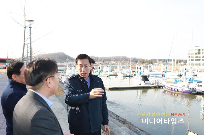 | 중부지방해경청장이 김포소재 아라마리나를 방문하여 안전관리 상태등 현장 점검 사진. <ⓒ미디어타임즈> |