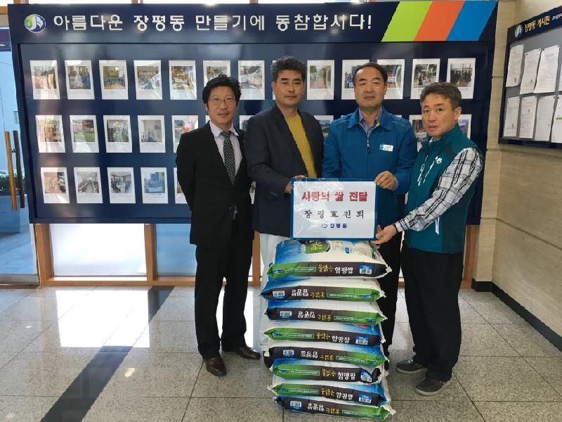 장평효친회(회장 임태성)는 지난 6일, 장평동주민센터(동장 김백구)에 사랑의 쌀(20kg) 8포를 전달하여 훈훈함을 선사했다.