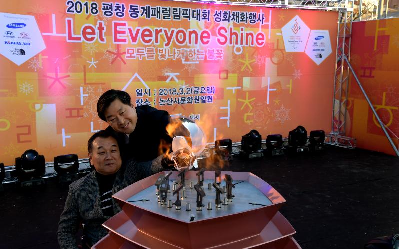 지난 2일 논산문화원에서 ′모두를 빛나게 하는 불꽃‵ 이란 슬로건 아래 열린 이날 행사는 황명선 논산시장과 손병복 지체장애인협회장이 성화대에 점화한 후, 김종민 국회의원, 김형도 시의회 의장, 이재용 논산시장애인협회장과 시민 등이 참여한 가운데 패럴림픽 성공을 기원했다.