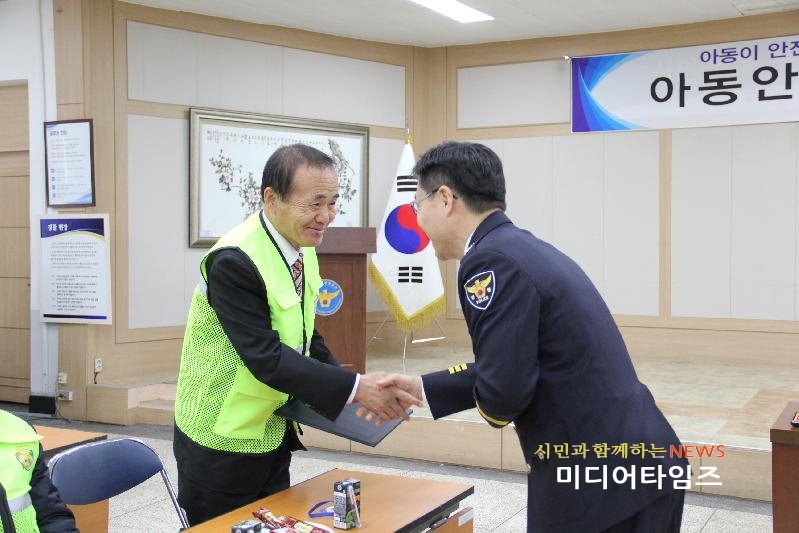 [미디어타임즈=문상수 기자] 인천부평경찰서 (서장 강헌수) 에서는, 지난2일 아동안전지킴이(36명)을 대상으로 위촉장 수여 및 발대식을 개최했다.이날, 아동이 안전한 성장환경을 만들어 가기 위하여 상황별 대처요령 등 직무교육을 실시하고 외부전문강사를 초빙하여 아동성폭력 예방 및 대처방법 등 전문교육을 병행 실시하였다. 아동안전지킴이는, 「퇴직경찰관 및 노인회 회원」등으로서 건강한 75세 이하 어르신 중, 범죄경력확인 및 심사위원회의 면접 등 엄정한 심의를 통해 책임감과 사명감이 강한 사람 위주로 선발되었고, 2018년 3월부터 12월까지 하교시간대(14:00-18:00) 학교 주변 ․ 통학로 ・ 놀이터 ・ 공원 및 아동안전지킴이집 연계 순찰을 통해 아동대상 범죄예방 및 보호 역할을 수행하게 된다.강헌수 서장은 아동안전지킴이 활동시 특히 안전에 유의하고, 내 아이와 우리가족을 지킨다는 마음가짐으로 봉사해 주실 것을 당부하였다.