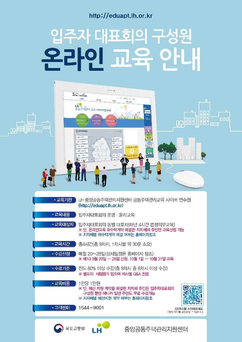 이에 시는 온라인 교육 프로그램을 마련한 LH와 지난 연말 의무관리대상 공동주택 입주자대표회의 구성원에 대한 2018년 온라인 교육 위·수탁계약을 체결했다.