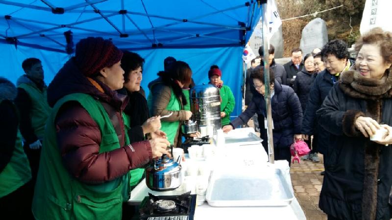새마을협의회원 20여명은 쌀쌀한 영하 날씨에도 불구하고 나눔 봉사를 위해 기념식 전날부터 미리 한방차를 달여 준비했으며, 행사 당일 3.1절 기념식에 참석한 내빈 및 시민들에게 따뜻한 한방차와 커피, 녹차 등을 제공했다.