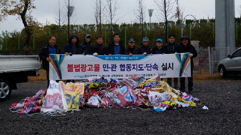 포항시가 지난 7일 본청과 구청, 광고협회 20여명으로 단속반을 구성해불법현수막 민·관합동 단속을 실시했다. 이날은 도로변 및 상가주변에 무질서하게 난립해 통행을 방해하고 도시미관을 해치고 있는 불법광고물을 집중적으로 정비했다. 특히 최근 아파트 분양 등을 홍보하기 위해 가로수 등에 부착한 분양광고 및 기타 불법광고 현수막 300여장을 정비·단속했다. 포항시 관계자는 “앞으로도 도시미관을 해치는 불법광고물에 대해 지속적인 지도단속을 추진해 나가겠다”고 말했다.// 심후보 기자 sky626201@naver.com