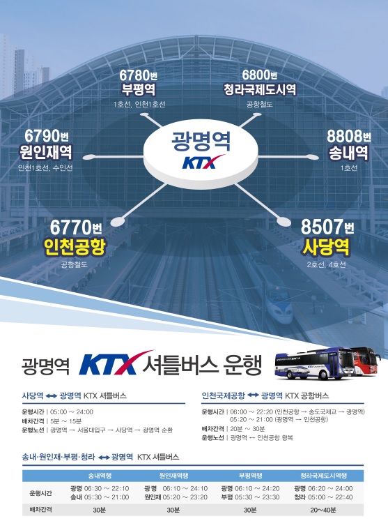 또한 광명역에서는 사당행 셔틀버스가 10분 간격으로 운행하고 있어, 이를 이용하면 서울까지의 접근성 또한 좋아질 수 있으며, 지방에서 KTX를 이용하여 인천 관광의 거점으로 빠르게 이동할 수도 있어, 지방 이용객들의 인천 접근성도 높일 수 있는 계기가 될 것이다.