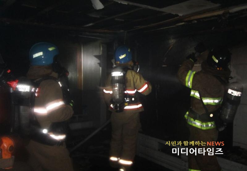 | 마전동 아파트 화재 안전진압 사진. <ⓒ미디어타임즈> |