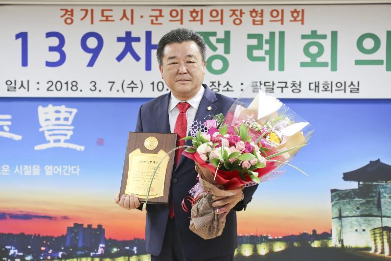 전국시군구의회의장협의회가 수여하는 지방의정봉사상은 지역발전 및 지방자치 활성화에 기여한 의원에게 주어지는 상이다.