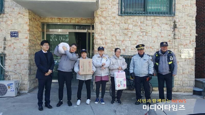[미디어타임즈=문상수 기자] 인천남부경찰서 문학지구대와 자율방범대의 따뜻한 봉사활동 사례가 주변 이웃들에게 귀감이 되고 있다.지난 3일 11:00경 인천남부경찰서 문학지구대 소속 남기영 경위와 이덕진 순경은 관내 순찰중 문학동 일대에서 예비군법위반으로 벌금수배가 있었던 한 남성을 발견하여 검거하게 되었다.두 경찰관은 해당 남성 호송하며 대화를 나누던 중, 생활고로 인해 벌금을 내지 못했으며 현재 거주하는 집에 아내와 3살난 아이가 있는데 가스와 전기가 끊겨 힘들게 살고 있다는 남성의 딱한 사연을 듣고 안타까운 마음에 지구대에 알렸다.이후, 문학지구대(경감 김주호)는 자율방범대(대장 김신애)와 협조하여 쌀과 라면 등 생필품과 아기를 위한 분유와 아기기저귀를 구입해 지난 6일 남성의 가정을 방문해 전달했다. 해당남성은 “평생 은혜를 잊지 않고 법을 잘 지켜 모범적인 생활을 하겠다”며 “가장으로써 아내와 아이를 책임지고 이끌어 나갈 수 있도록 열심히 노력하겠다”고 말했다.한편, 문학지구대장 김주호 경감은“추후에도 문학동 주민센터와 남구청 등에 도울 수 있는 방법을 강구 할 것이며, 앞으로도 관내 이웃들을 살피고 어렵고 불편한 점을 도울 수 있는 따뜻한 경찰이 되겠다”고 말했다.