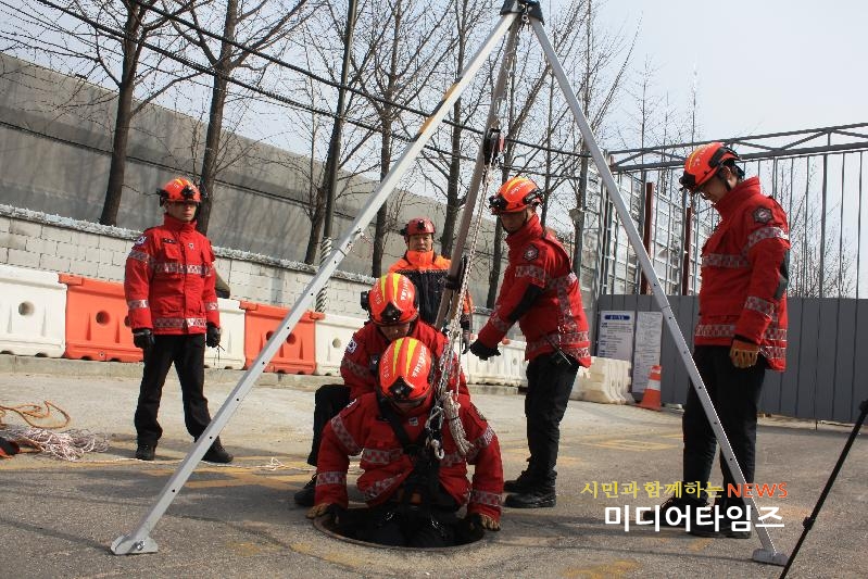 | 맨홀사고 인명구조훈련 사진. <ⓒ미디어타임즈> |