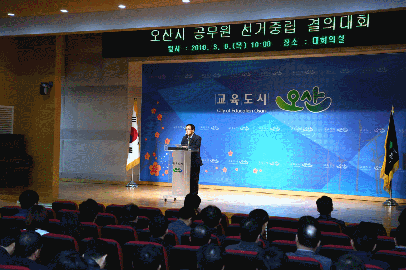 오산시(시장 곽상욱)는 8일 시청 대회의실에서 오는 6월 13일 실시하는 제7회 전국동시지방선거를 대비하여 ‘공무원 선거중립 실천 결의대회’를 개최했다고 밝혔다.