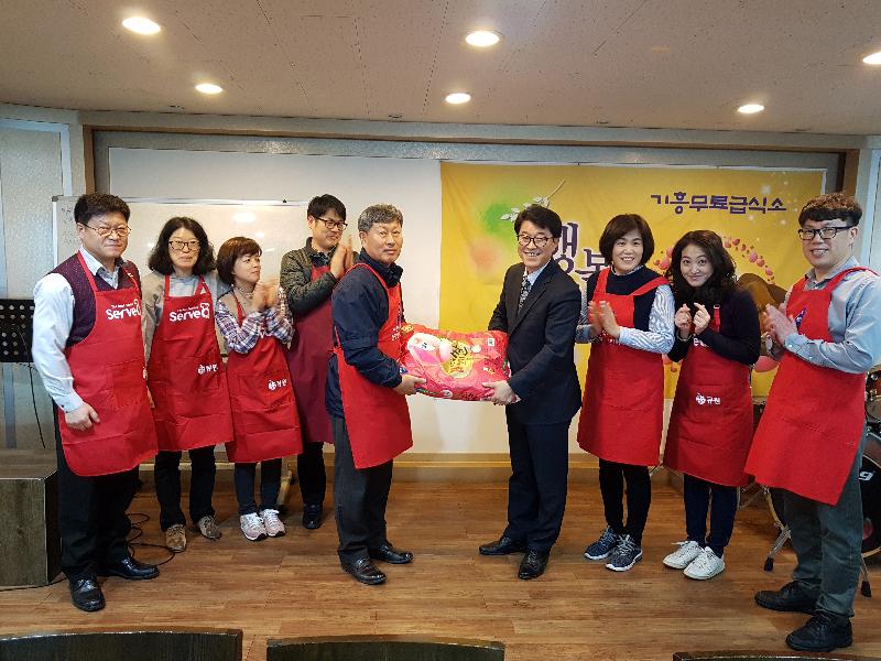 기탁한 쌀은 지난해 용인시 부서평가에서 우수부서로 받은 상금으로 마련한 것이다. 이날 참가자들은 상차림과 배식, 설거지 등 어려운 이웃을 위해 봉사활동도 펼쳤다.