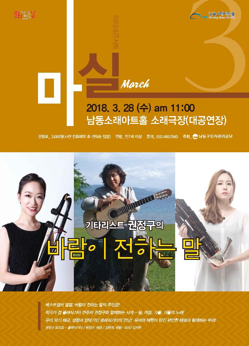 인천 남동소래아트홀(남동구도시관리공단. 이사장 김종필)의 기획상설 프로그램 마티네콘서트 마실이 4월 25일, 남동소래아트홀 대공연장에서 펼쳐진다.