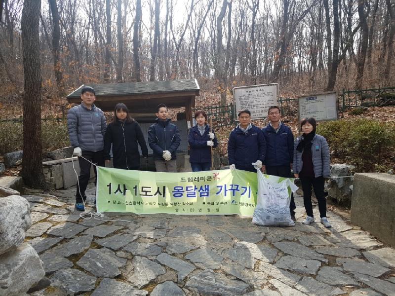 먹는 물 공동시설인 오봉산약수터 등 남동구의 3개 지정약수터에서 ‘1사 1도시 옹달샘가꾸기 운동’ 협약 기업체와 참여자들이 식수대 및 주변을 청소했으며, 오염물질이 약수로 침투되는 것을 예방하기 위해 구석구석 세밀하게 진행했다.