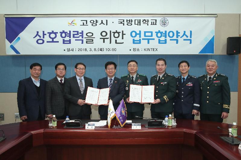 고양시는(시장 최성) 8일(목) 국방대학교와 상호 발전과 지속적 협력 증진을 위한 업무협약(MOU)을 체결했다.