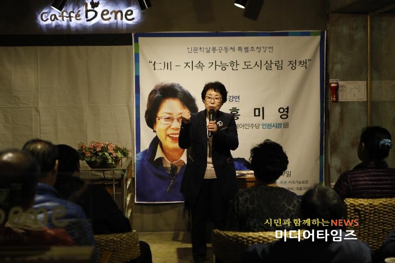 [미디어타임즈=문상수 기자] 홍미영 더불어민주당 인천시장 예비후보는 7일 연수구에서 세 번째 숙박행정 선거운동으로 ‘생활정치’를 주제로 한 강연회를 갖고, 가정집에서 잠을 자며 신도시 주민들과 교육 및 GTX 노선 문제 등 신도시 주민들이 관심을 갖고 있는 현안을 놓고 토론을 벌였다.홍미영 예비후보는 이날 밤 카페베네 연수대동점에서 인문학살롱공동체 주최, 지속가능포럼 주관, 유네스코인천광역시협회와 마을과 이웃 협력으로 마련한 토론회에 참석, 50여명의 주민을 상대로 ‘마을활동가에서 생활정치인, 도시행정가’를 주제로 강연을 했다.이날 홍미영 예비후보는 ▲지방재정 불균형 문제 ▲송도신도시와 연수구 원도심간 인프라 격차 극복 방안 ▲인천시와 인천시교육청과의 관계 개선책 ▲공공기관 갈등조정관제 확대 방안 등 주민 관심 사안을 주제로 이야기를 풀어 나갔다.한 참석자는 “인천시와 인천시교육청 간 학교신설 문제를 비롯해 무상급식 등 예산 지원문제를 놓고 자주 마찰이 발생하고 있다”며 시장이 되면 두 기관 간 관계회복에 관심을 가져 줄 것을 건의했다.홍미영 후보는 “두 번의 시의원과 재선 구청장을 지내면서 교육행정에 높은 칸막이가 설치돼 있다는 것을 피부로 느꼈다. 시장이 되면 지속가능발전 지방정부협의회 회장 등으로 일하며 강조해왔던 지방분권을 완전히 이뤄내 교육청이 시정부와 한 목소리를 낼 수 있는 분위기를 조성하겠다”고 밝혔다.구직난을 우려하는 질문에는 앞으로 ‘사회적 경제’ 분야 등에서 새로운 일자리를 창출, ‘함께 사는 도시 인천’을 만들겠다고 강조했다. 홍미영 후보는 부평구가 많은 사람들이 불가능하다고 생각했던 신세계의 부천 상동 복합쇼핑몰 건설과 국방부의 산곡동 통합예비군훈련장 이전을 막아낸 과정을 설명하며, 시민의 지지를 이끌어 내면 자치단체라도 큰 권력과 싸워 이길 수 있다고 주장했다.홍 후보는 강연회가 끝난 후 연수구의 한 아파트 단지에서 아파트주민 및 인문학 연구자 20여명과 주민생활을 주제로 간담회를 갖고, 숙박행정을 이어 나갔다.이 자리에서 “미투(Me Too) 운동은 촛불이 세상을 밝히는 과정에서 일어난 것으로 성차별 등 잘못된 문화를 바로 잡자는 취지인제 남성들 사이에서 ‘특정인의 실수’로 축소하려는 경향이 있다”며 “실질적으로 여성을 존중하는 문화가 확립돼야 한다”고 지적했다.연수구 주민들은 교육문제와 지역문화 활성화 문제에 특히 관심을 보였으며, 홍 후보는 8일 아침 선학전철역 주변에서 출근길 아침 인사를 하는 것으로 숙박 행정을 마무리 했다.