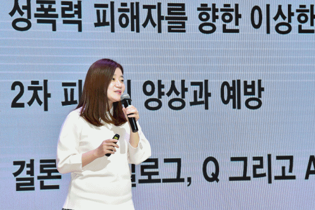 수원시가 8일 세계여성의 날을 기념해 수원시청에서 연 ‘성인지 감수성 교육’에서 강연한 이은의 변호사는 “침묵하지 말고, 성폭력 피해자의 옆에 있어 달라”고 당부했다.