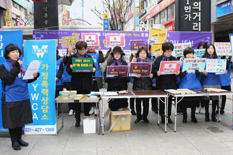 안양 여성시민운동단체인 YWCA가 사회 전반에서 이어지고 있는 ‘미투운동’(Me Too·성폭력 피해고발) 및 ‘위드유운동’(With You·당신과 함께 합니다)을 적극 지지하며 성 폭력 근절과 성 평등 문화 확산을 위한 행동에 나섰다.