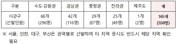 ■ 권역별 선발지역 : 165개 시·군·구(선발제외지역 64개 시·군·구)