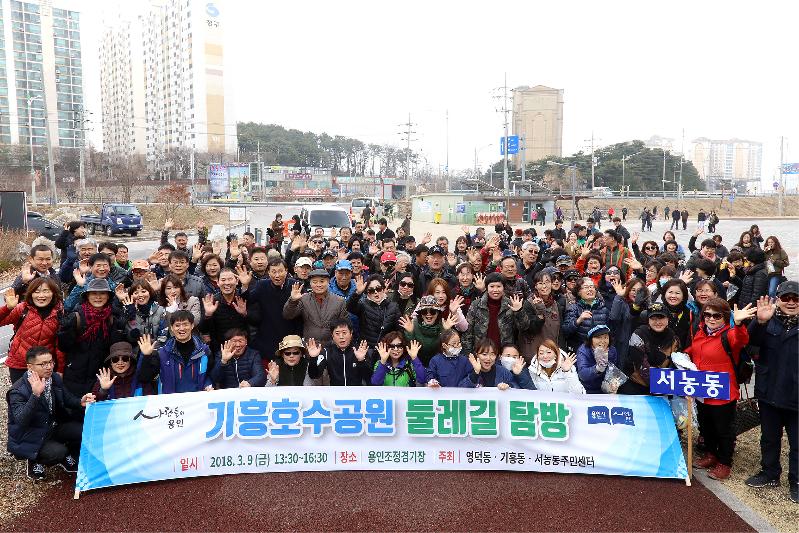 이날 행사는 지난 1월 말 전면 공개된 기흥호수공원 순환산책로를 시민 눈높이에서 점검하고 널리 알리기 위해 마련됐으며, 정찬민 용인시장을 비롯해 영덕동‧기흥동‧서농동 주민 200여명이 참가했다.