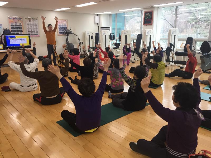 운동처방실 강사가 지난 1일 6회 운영하는 운동프로그램 참여 어르신들에게 치타댄스 동작을 연습하도록 지도한다. 치타댄스에 관심있는 시민 누구나 전화예약(031-324-4954)해 참여할 수 있다.