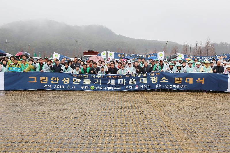안성시새마을회(회장 이용우),새마을지도자안성시협의회(회장 김종인) 안성시새마을부녀회(회장 전선숙)는 지난 8일 안성맞춤랜드에서 남녀 새마을지도자 300여명이 참석한 가운데 저탄소 녹색성장 생활화운동 ‘2018 그린 안성만들기 새마을 대청소 폐자원 모으기’ 발대식을 개최하였다.