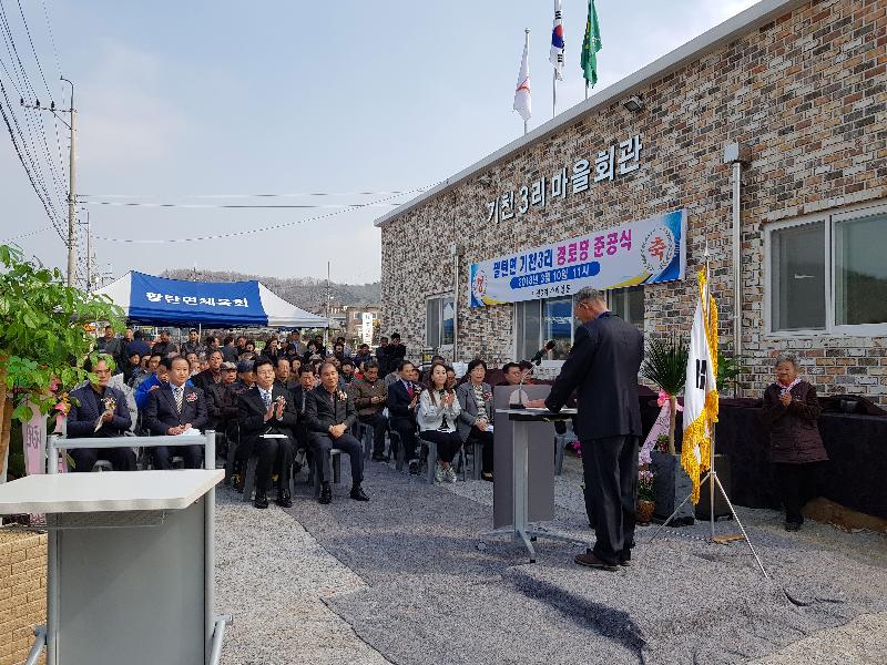정상규 기천3리 이장은 “마을 주민들이 십시일반 모은 정성으로 우리 마을의 오랜 숙원인 경로당이 건립돼 진심으로 기쁘고 감사하다”며, “기천3리 주민들의 소중한 쉼터가 되도록 노력하겠다”고 말했다.