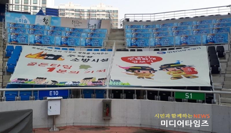 [미디어타임즈=문상수 기자] 인천남부소방서(서장 류환형)는 인천의 프로축구팀인 인천유나이티드와 함께 인천축구전용경기장을 활용하여 2018 K리그를 통한 소방 주요정책을 알린다고 전했다.지난 10일 안천축구전용경기장에 열린 인천과 전북의 경기에서 소방 주요정책을 알리는 대형 테이블석 현수막을 설치하고 영상전광판 안전영상 송출 등을 통해 구장을 찾는 관중과 프로축구 애청자를 대상으로 즐기며 안전을 습득할 수 있도록 주택용 소방시설 설치를 홍보했다.소방서 관계자는“기분 좋은 홈경기 승리의 기운을 받아 많은 시민들이 프로축구에 관심을 갖고 소방 주요정책도 함께 관심을 가져주길 바란다. 인천유나이티드 모든 관계자에게 감사드리며, 올 시즌 좋은 성적을 거두길 응원한다.”고 전했다.