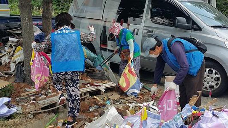 | 지난해 2단계 공공근로사업 참여자들이 분당 금곡동 환경 정비하는 사진. |