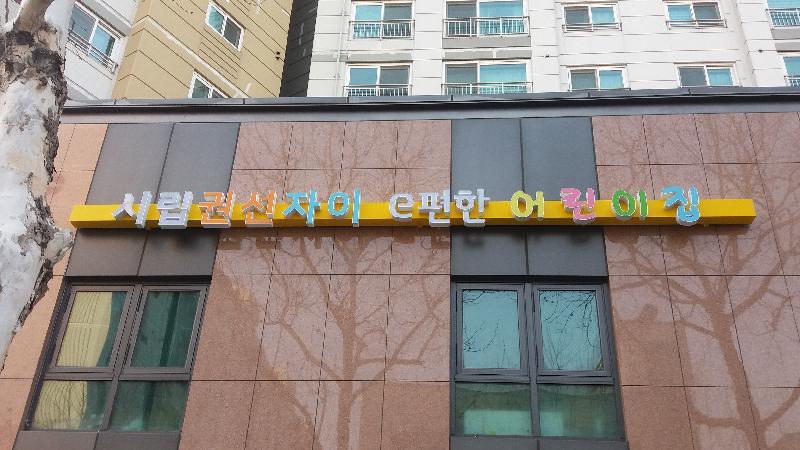 권선자이e편한세상아파트 단지 내 관리동에 있는 시립권선자이e편한어린이집은 민간어린이집으로 운영하던 시설을 시립어린이집으로 전환해 운영하는 첫 번째 사례다. 지상 1층 연면적 564㎡ 규모로 아동 정원은 107명이다.