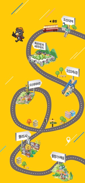전철 1호선 오산대역에서 출발하는 시티투어 전용버스로 처음 도착하는 곳은 조선시대 정조와 권율장군의 일화가 깃든 독산성과 세마대지이며, 남녀노소 무리 없이 걷기 쉬운 산림욕장 둘레길은 아이들에게는 흥미로운 자연학습장이자 어른들에게는 지친 심신을 달래주는 힐링의 공간이다.