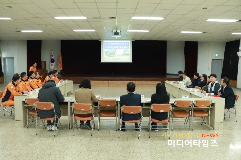 [미디어타임즈=문상수 기자] 인천공단소방서(서장 안영석)는 13일 3층 강당에서‘선학국제빙상경기장’(연수구 선학동)을 대상으로 대형재난 발생시 신속한 인명구조 활동 등 재난대응역량 강화를 위한 긴급구조통제단 불시훈련 대비 기관합동 도상훈련을 실시했다.이날 훈련은 2018년 3월 ◯일 ◯시경 연수구 선학국제빙상경기장에서 원인미상의 폭발로 인해 건물이 붕괴되고 화재가 발생하여 다수의 인명 피해가 예상되는 상황을 가정하여 신속한 현장대응에 필요한 조치사항 및 대응방안 등에 대해 관내 연수구청, 경찰 등 15개 유관기관이 참여하여 토론하는 방식으로 진행됐다.안영석 공단소방서장은“2018년 긴급구조통제단 불시 가동훈련을 통해 각 기관․단체가 유기적인 협업체계를 구축하고 재난 발생 시 적극적인 대응활동을 전개할 수 있도록 현실성 있는 훈련으로 내실을 기하겠다”고 말했다.