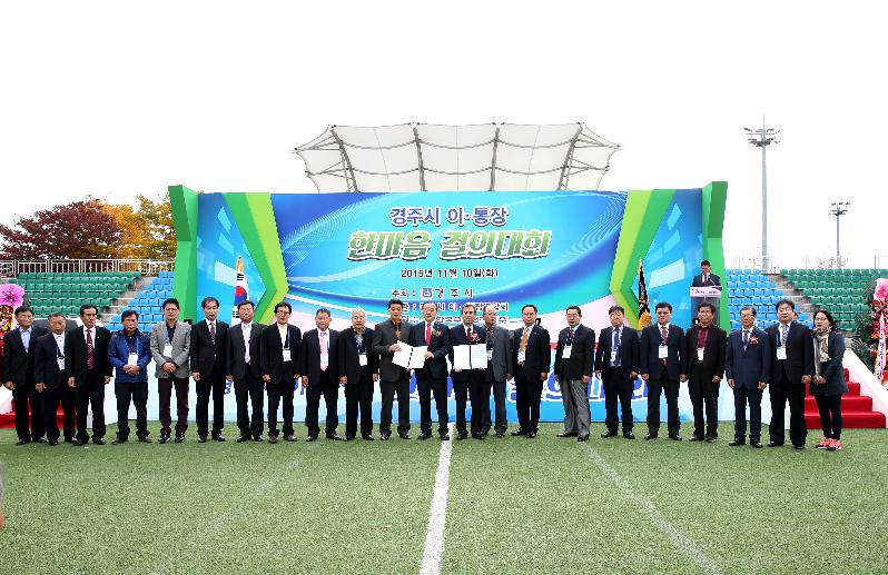 경주시 이․통장연합회(회장 김일곤)는 10일 축구공원 제5구장에서 경주시 전체 이·통장이 모인 가운데 전국 최초로 성실·봉사의무 실천 결의대회를 가졌다.경주시 635명의 이·통장을 대표하여 강상중 월성동 통장협의회장과 여경화 황성동 통장협의회장이 실천 결의문을 낭독하고 결의문을 최양식 경주시장과 권영길 시의회 의장에게 전달했다.결의문은 직무 수행과 관련한 법규 준수, 건전한 사생활 유지와 부패방지 근절 노력, 공명선거 문화 확산을 위한 공직선거법 준수 등을 담고 있다. 경주시 이·통장 모두는 이번 결의대회를 통해 지역 일선의 참된 봉사자로서의 자세를 확립할 것을 다짐했다.최양식 경주시장은 “지역사회의 발전을 위해 마을의 리더로서 이·통장의 역할이 매우 중요하며, 공정하고 청렴한 경주를 실현하는데 지역의 지도자로서 앞장서 줄 것을 당부” 했다.