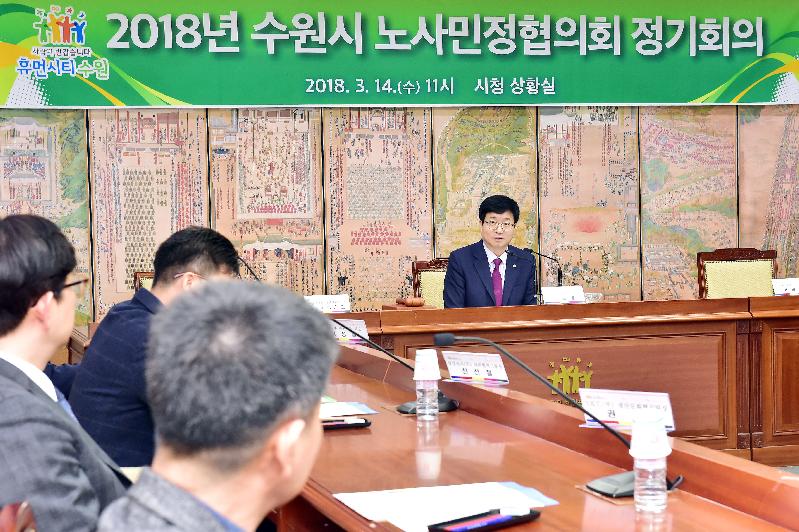 수원시 노사민정협의회가 2018년 고용노동현안 의제로 ‘청년 일자리 창출과 고용서비스 확대’, ‘공공부문 비정규직 고용안정과 차별 해소’, ‘취약노동계층의 노동복지 향상과 사회안전망 구축’을 선정했다.