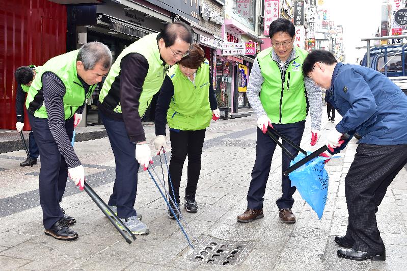 수원시는 14일 매산동주민센터에서 수원역에 이르는 거리 일원에서 ‘시민과 함께하는 봄맞이 대청소’를 진행했다.