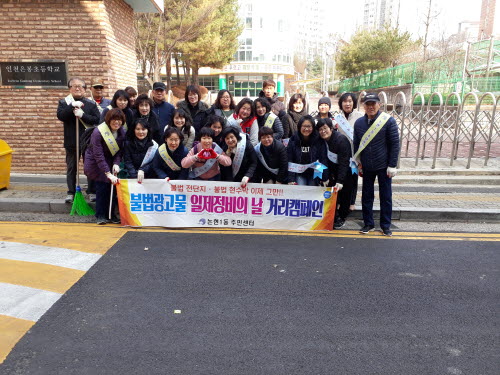 개학기를 맞아 통학길 불법광고물 일제정비를 통해 쾌적하고 안전한 교육환경을 조성하고자 진행했으며, 통장, 클린봉사단 등 50여명이 참여하여 불법광고물 일제정비와 함께 거리캠페인을 전개했다.