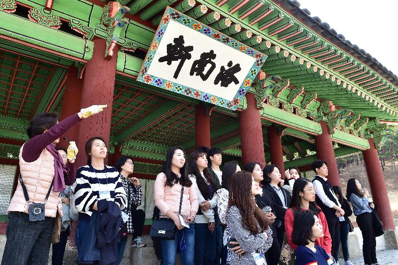 | 수원시 새내기 공직자들이 화성행궁 낙남헌(洛南軒)에서 해설사로부터 설명을 듣는 모습.<사진=수원시청 제공> |