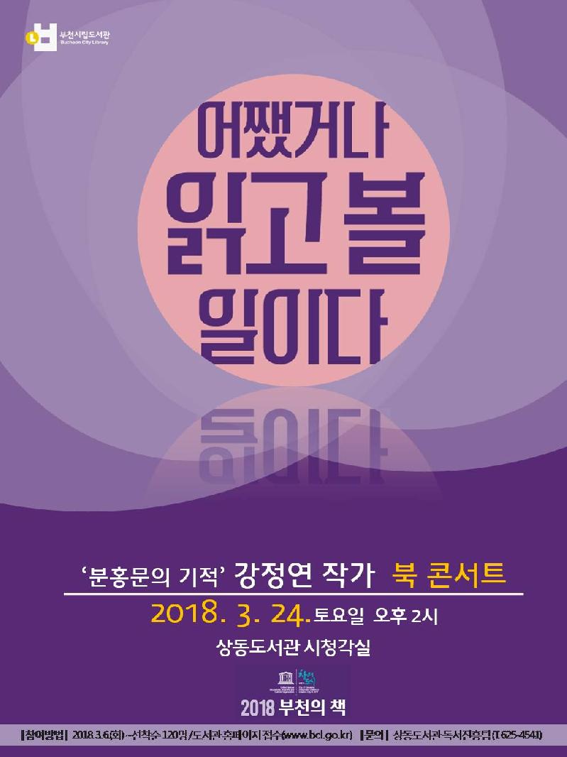 부천시는 오는 24일(토) 올해 부천의 책으로 선정된 의 저자 강정연 작가를 초청해 북콘서트를 연다.