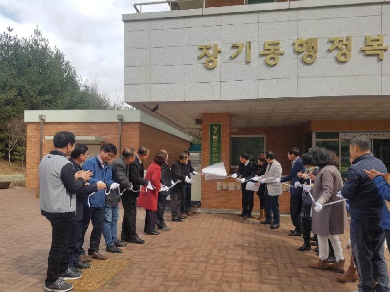 장기동주민자치위원회는 지난 2013년 5월 1일 동행정복지센터내에서 5개 과목, 7개반의 프로그램을 개설하여 발족한 이래 지역주민의 편의 및 복리증진을 위해 다양한 활동을 펼쳐 왔으나, 현판이 없어 아쉬움이 있었고 금번 주물동판으로 제작하여 새롭게 주민자치센터를 홍보하고 주민자치 활성화를 도모하고자 다함께 다짐했다.