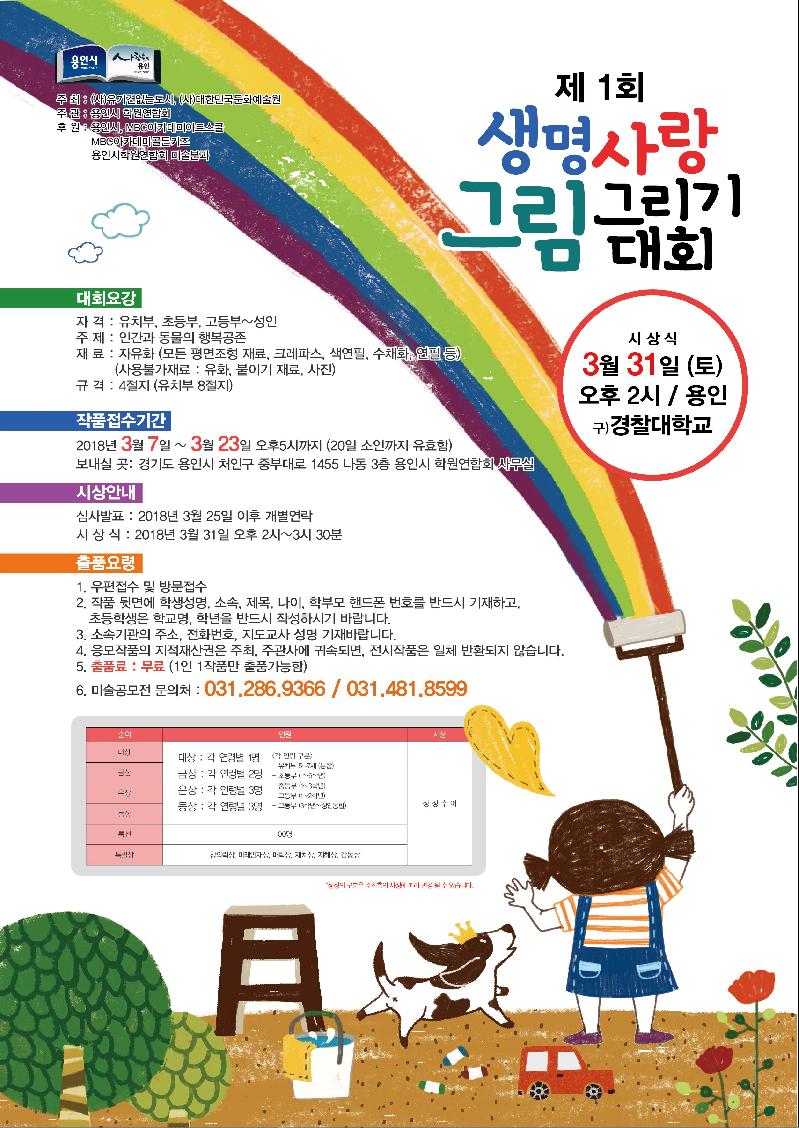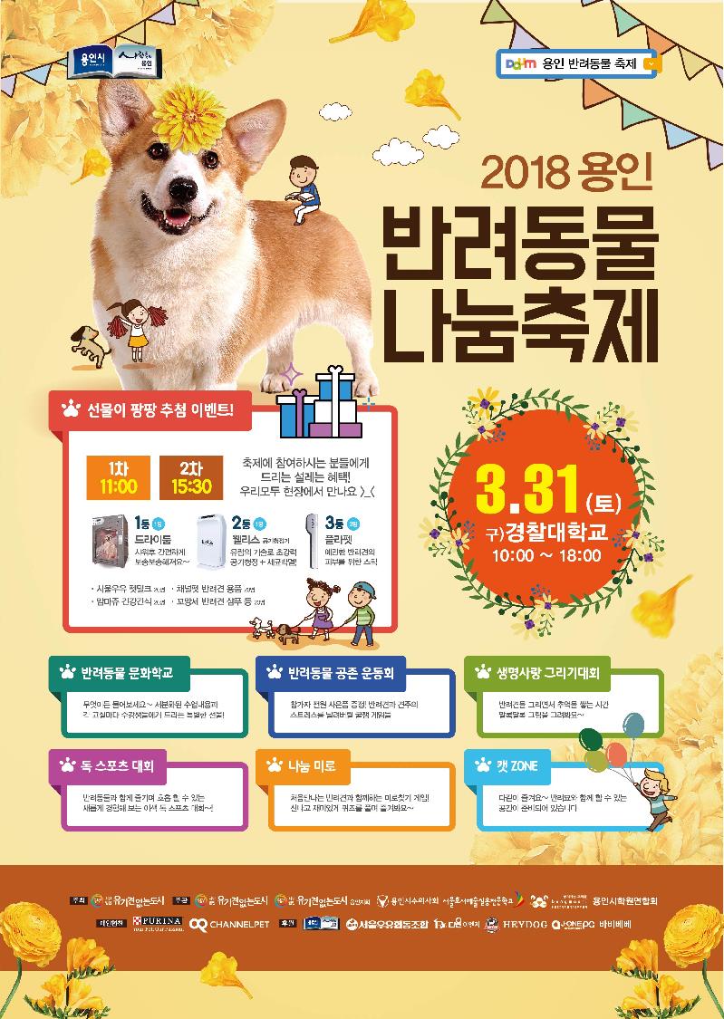용인시는 많은 반려동물 가족들이 함께 봄날을 즐길 수 있도록 오는 31일(토) 기흥구 언남동 (구)경찰대학교 운동장서‘반려동물 나눔축제’를 개최한다고 밝혔다.