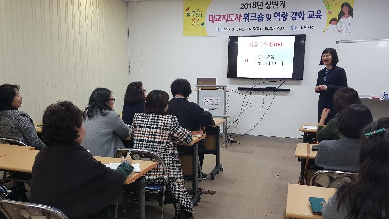 첫 강좌는 15일 시청 교육실에서 김미연 강사가 ‘성(性)과 미디어’를 주제로 진행했다. 교육에 앞서 참가자들은 태교지도사 활동사례를 발표하고 정보를 공유하는 워크숍도 가졌다.
