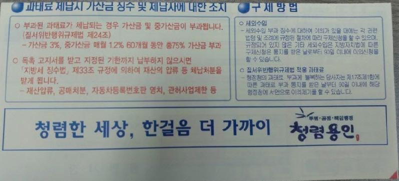 | 청렴고지서 뒷면.<사진=용인시청 제공> |