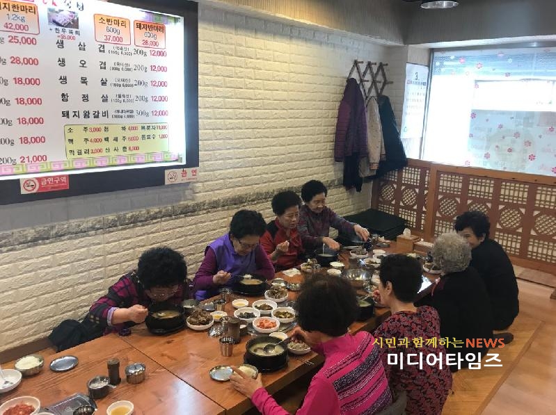 | 석남1동 경로당 어르신 효 실천 식사 대접 사진. <ⓒ미디어타임즈> |