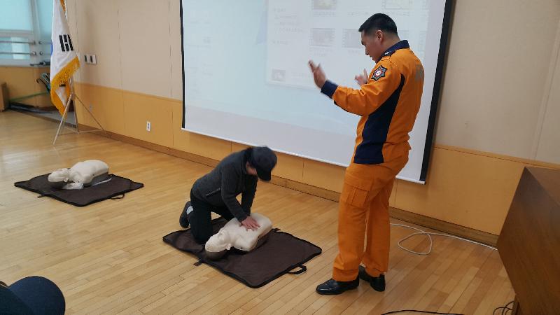 [미디어타임즈=문상수 기자] 인천공단소방서(서장 안영석)는 15일 연수구 연수동에 위치한 행정복지센터를 방문하여 공원 및 환경지킴이 노인 등 80여명을 대상으로 소방안전교육을 실시했다.이날 교육은 공원 및 환경지킴이 노인들이 체험교육을 통해 안전의식을 배양하고 소방안전문화 확산을 도모하기위해 실시됐으며, 화재발생 시 적절한 대처방법 및 심폐소생술 체험교육을 실시했다.교육 내용으로는 ▲화재 시 대피 및 119신고요령 ▲소화기 및 옥내소화전 등 소방시설 사용법 ▲2018년 달라지는 소방법령 안내 ▲심폐소생술 등 생활응급처치 교육 등이다.한편, 교육에 참가한 사람들은“신문, 인터넷 등 언론에서만 봐왔던 재난발생시 대처법을 직접 눈으로 보고 체험해보아서 뜻 깊고 유익한 시간이었다”며“앞으로도 이를 바탕으로 몸에 익혀 실천하도록 노력하겠다”고 소감을 밝혔다.공단소방서 관계자는“다채로운 체험‧교육을 통해 위기 발생 시 시민들이 즉각 대응할 수 있도록 힘쓰겠다”고 말했다.