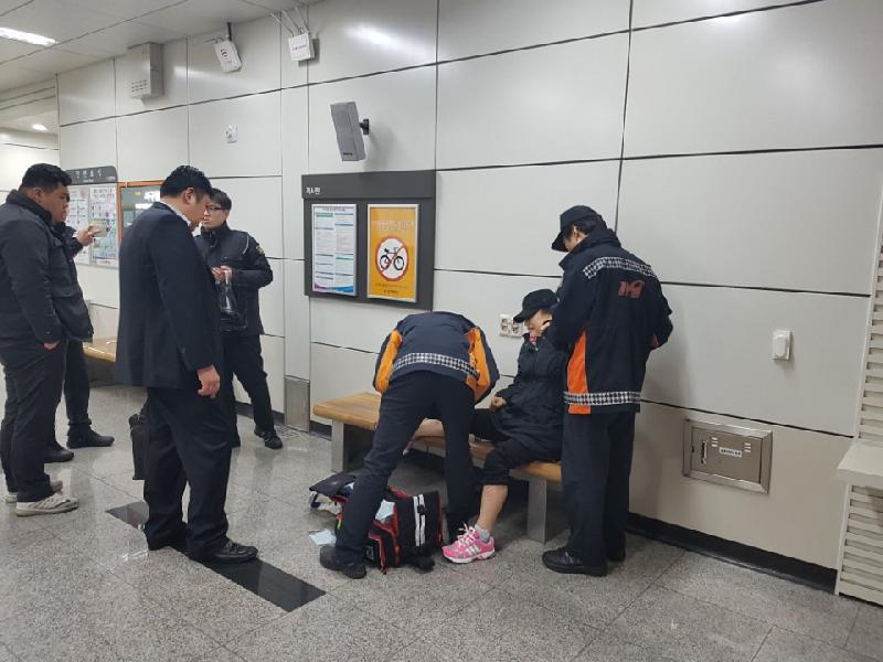 [미디어타임즈=문상수 기자] 인천서부소방서(서장 김준태)는 15일 오후 2시 50분경 서구청역 가정방면 에스컬레이터에서 낙상사고가 발생했다는 신고를 받고 긴급 출동하여 부상자 1명(문 모 씨, 여, 67세)을 신속히 구조했다.현장 도착 당시 문 모 씨가 에스컬레이터에서 미끄러지며 굴러 떨어져 좌측 손목과 양쪽 정강이 등의 통증을 호소했으며 연희119구급대원들은 신속히 부상부위의 고정과 상처지혈 등 응급처치 후 인근 병원으로 신속하게 이송 조치했다.출동한 김훈민 119구급대원은 “에스컬레이터에서 낙상하여 부상을 입은 소식을 자주 접할 수 있다"며 "특히 비오는 날은 미끄러워 각별히 조심해야 하며 난간의 손잡이를 꼭 붙잡고 에스컬레이터에서 뛰거나 앞사람을 가로질러 나가는 등의 이용은 삼가하시기 바란다”고 전했다.