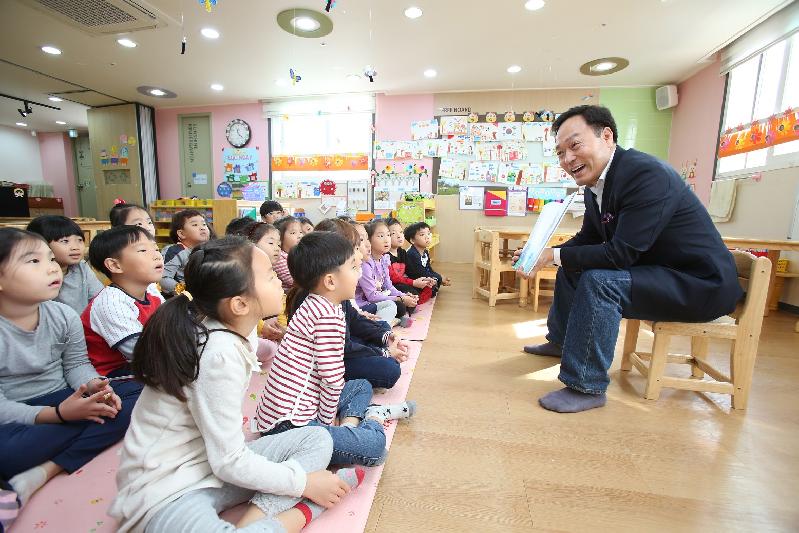 | 어린이 집에서 책을 읽어 주고 있다.<사진=안양시청 제공> |