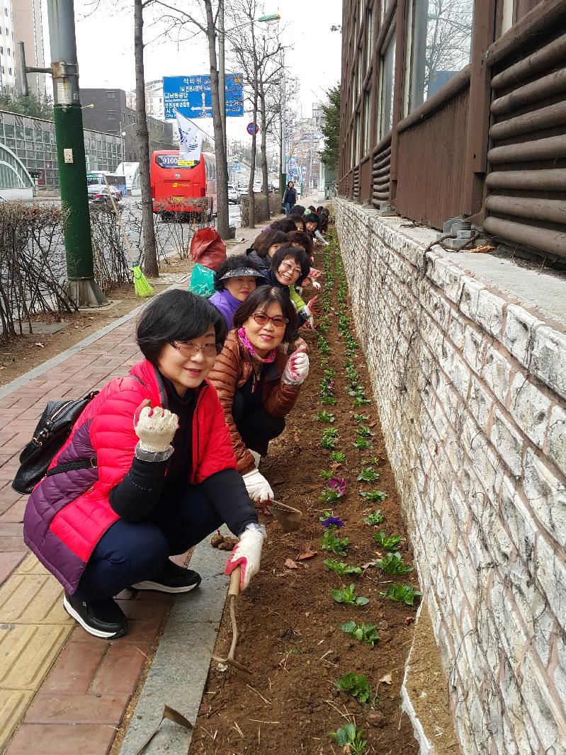 만수3동(동장 이개일)도 ‘새봄맞이 대청결운동’의 일환으로 만수3동 청사주변과 동부경로당, 신일경로당 등 경로당 2곳에 초화를 식재했다