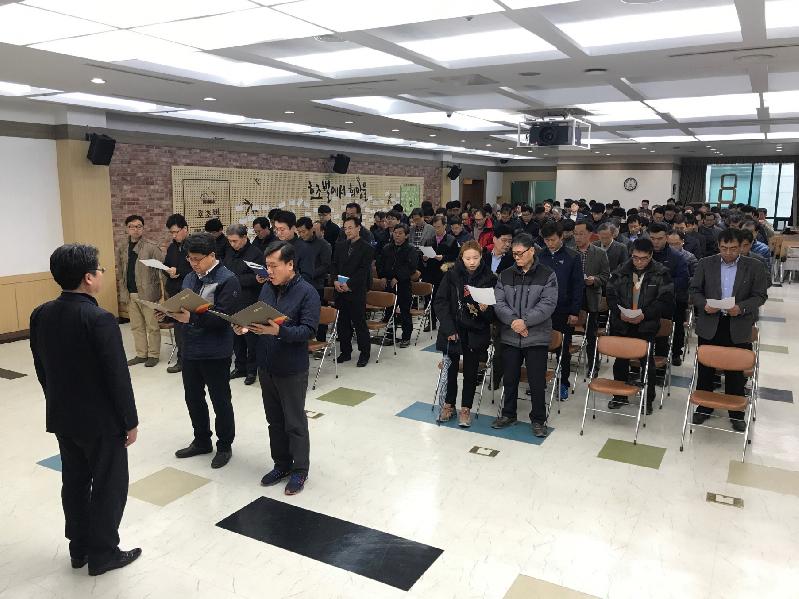 시흥시는 지난 15일, 건설공사 현장에서 발생하는 사고 및 재해를 뿌리 뽑고 시민의 불안요소를 해소하기 위하여 공사 현장소장과 감리자, 인·허가 부서 담당자 등 150여 명이 참석한 가운데 ‘안전교육 안전결의대회’를 실시했다.
