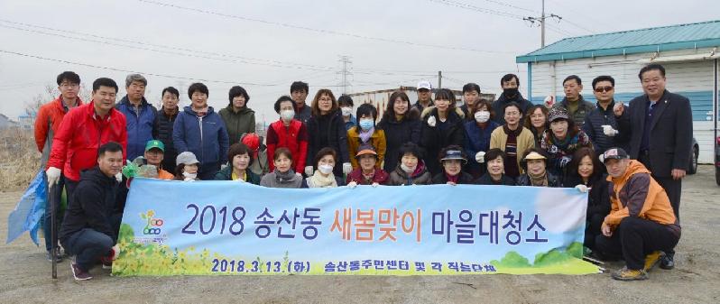 고양시 송산동은 지난 13일 통장협의회, 주민자치위원회, 시민안전지킴이, 적십자봉사회 등 10개 직능단체 100여 명이 참여한 가운데 새봄맞이 마을 대청소를 실시했다.