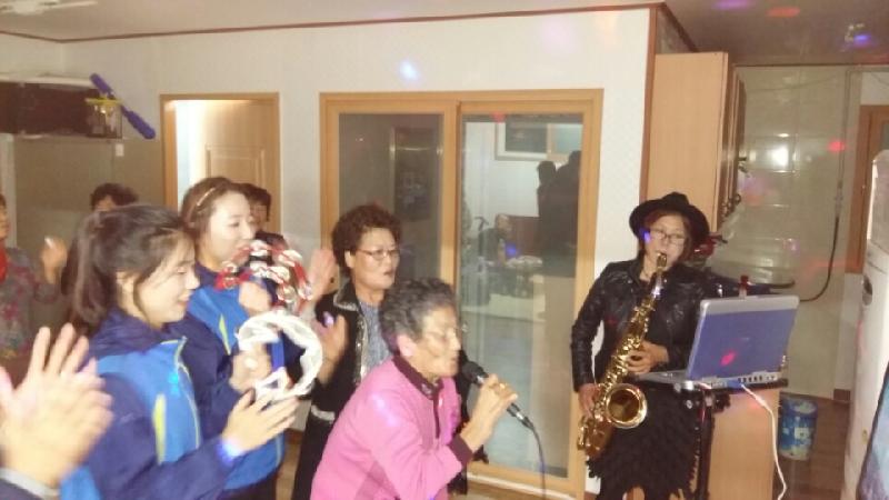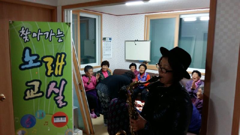 이 프로그램은 한산면 주민자치위원인 백연희씨의 색소폰 연주 재능기부로 매월 1~2회 실시되고 있으며 지난 11일(수)에는 한산면 용호리 호두마을을 방문하여 여가선용의 기회가 적은 지역주민들에게 색소폰 연주와 함께 노래교실을 운영하여 큰 호응을 얻었다.