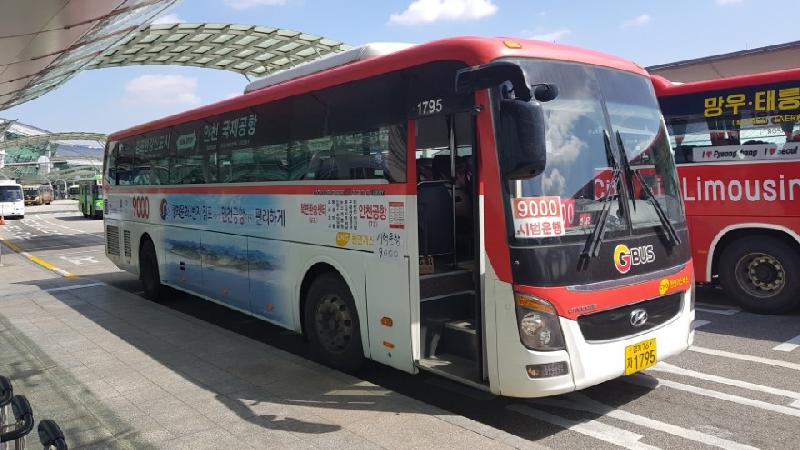 이번, 9000번 직행버스는 여행자 화물(캐리어) 휴대가 가능한 차량으로 북변환승센터에서 출발하고 김포한강신도시를 경유하여 인천국제공항 2터미널까지 1일 12회 운행된다.