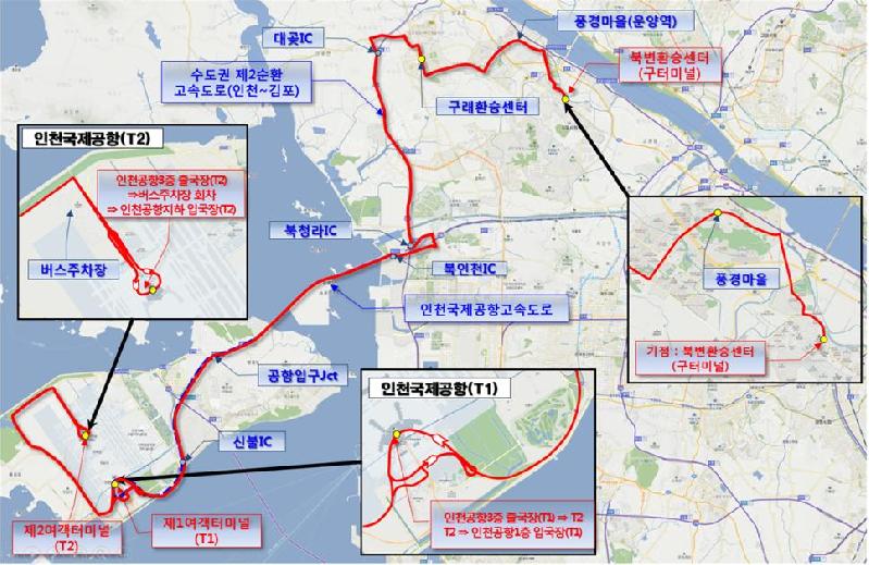 기점(북변환승센터)기준 첫차시간 04:30, 막차시간 19:20, 종점(2터미널 입국장)기준 첫차시간 06:10, 막차시간 20:50으로 운행 예정이다.